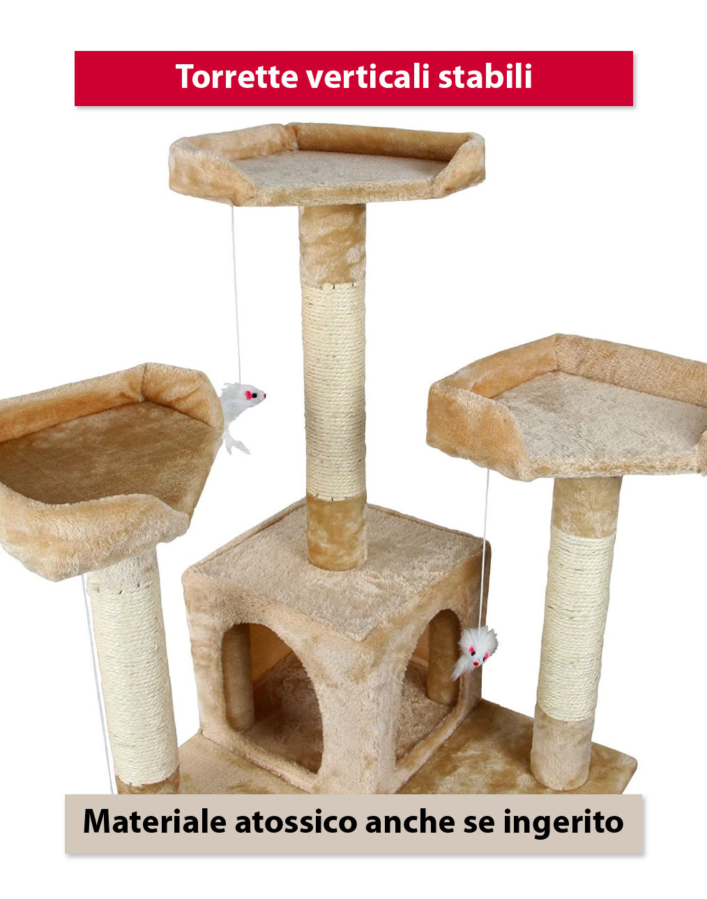 Grazie alla base rinforzata , i tiragraffi sono estremamente stabili, perfetti per uno o più gatti contemporaneamente, design resistente e multi-livelli, questa torre per gatti intratterrà i tuoi gatti per ore e darà loro un posto sicuro per giocare e rilassarsi